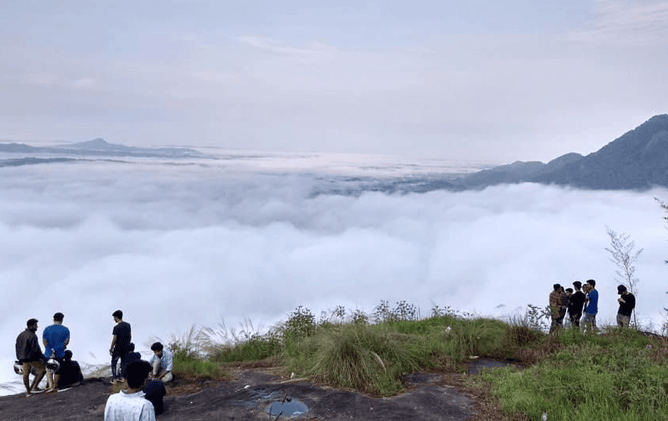 Meenuliyan Para or Meenulinjan para is a mountain peak situated near Thodupuzha in Idukki district, in the Indian state of Kerala. Meenuliyan para is noted for a huge rock that rises more than 4000 feet and has about two acres of evergreen forest on top of it. The rock itself covers an area more than 500 acres. The surface of this huge rock mountain looks like fish scales and hence the mountain gets the name ‘ Meenuliyan Para’.
